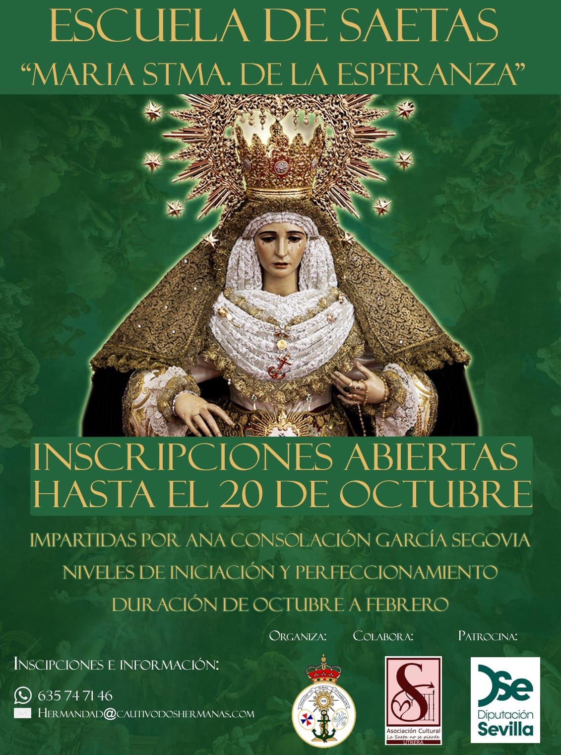 Nuestra Hermandad organiza junto con la Asociación Cultural “La saeta no se pierde” una escuela de saeta durante…