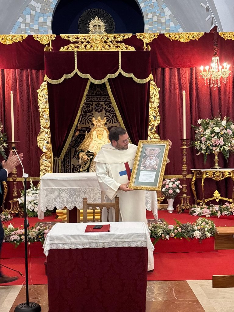 Dicha conferencia fue ofrecida por el Padre Francisco Jesús Ferrer OSST, a quien al término de la misma en señal de agradecimiento se le entregó un cuadro con la Imagen de la Santísima Virgen.